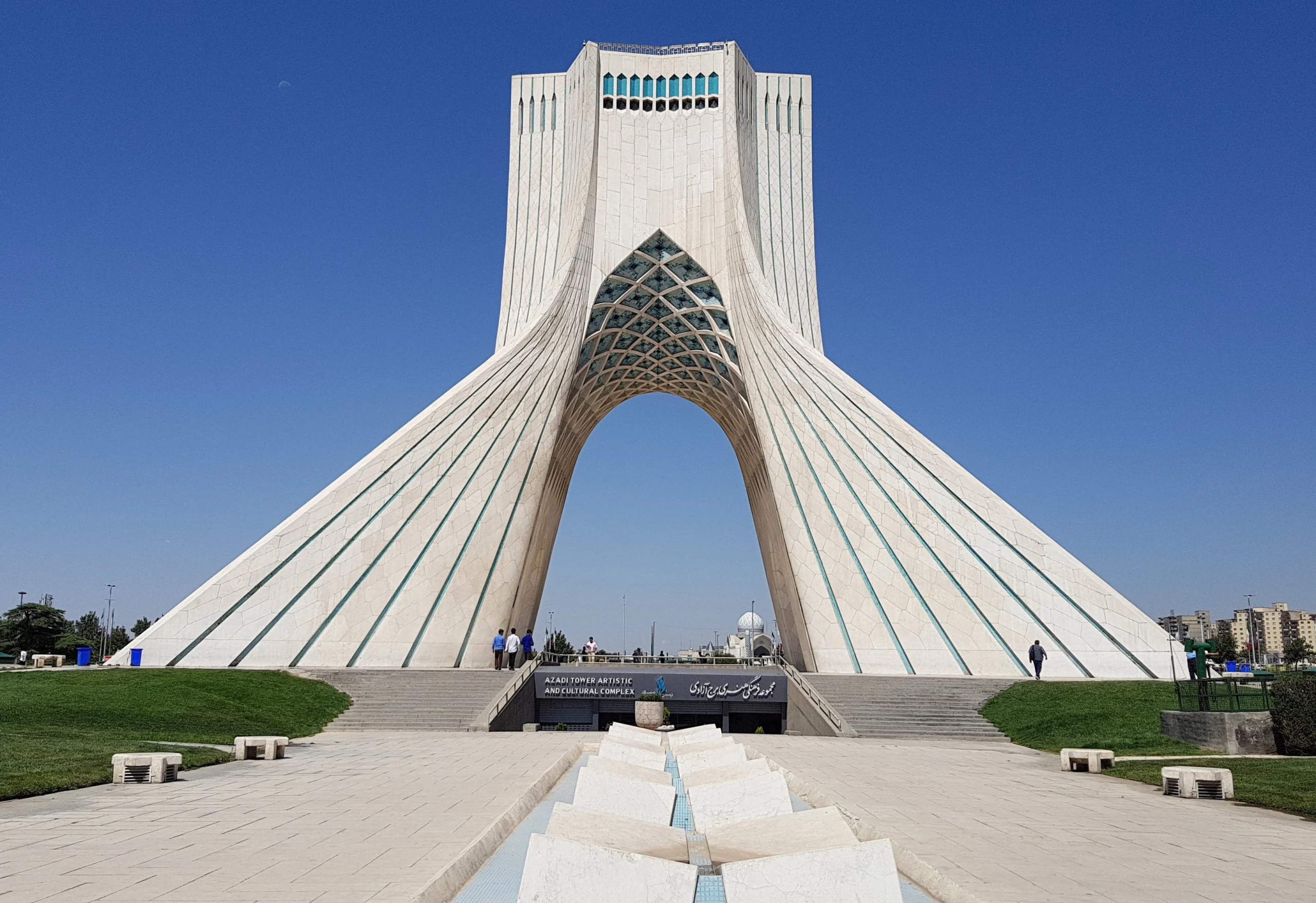 מגדל אזאדי מחופה בלא פחות מ-8,000 בלוקים של אבן שיש לבנה שהובאו ממחוז איספהאן שבאיראן.