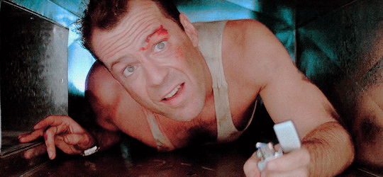 ג'ון מקליין בפיר האוורור. הסצנה הזו מהסרט הראשון, הפכה גם היא למם…