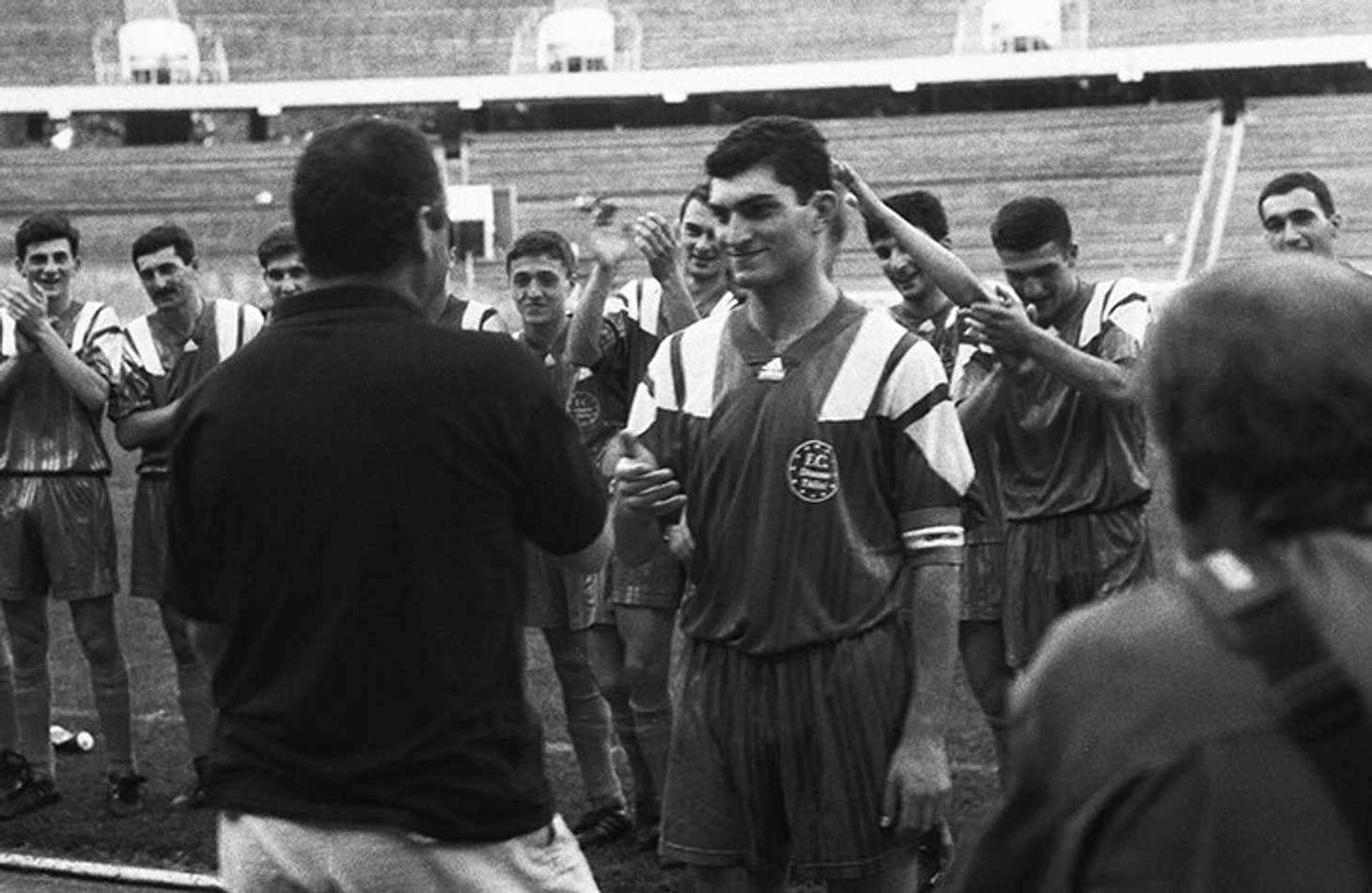 החלוץ מיכאיל קאווֶלַשווִילי (მიხეილ ყაველაშვილი) נולד בטביליסי ב־1971 והחל לשחק שם. ב־1987 הוא הגיע בסופו של דבר ללוקומוטיב שהתמודדה בליגות הנמוכות של ברית המועצות. ב־1988 ערך קאוולשווילי את הופעת הבכורה שלו במדי דינמו טביליסי בליגת העל — הופיע ל־20 דקות מול מועדון זניט סנקט פטרבורג. שנה לאחר מכן הוא השתתף בעוד מפגש אליפות והופעה חולפת בחצי גמר הגביע הסובייטי מול דנייפר דנייפרופטרובסק האוקראינית.