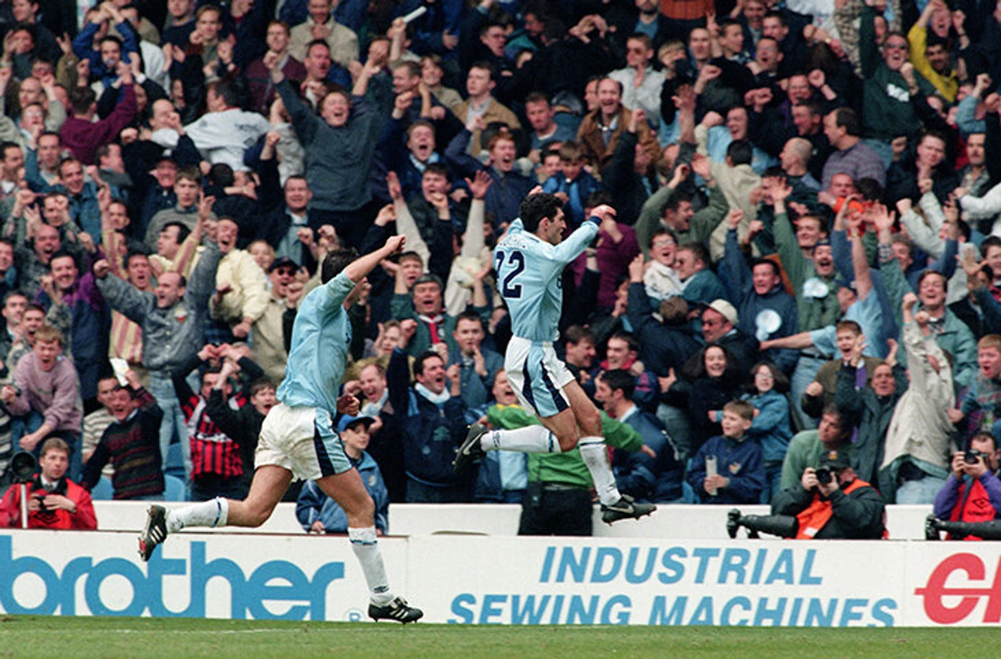 עם זאת, במנצ׳סטר סיטי לא חשבו על גביעי אירופה באותן שנים — הם נלחמו על הישרדות. החלוץ ערך את הופעת הבכורה שלו בפרמיירליג באפריל, במשחק ביתי מול מנצ'סטר יונייטד, מוליכת הטבלה והאלופה לעתיד. סיטי ספגה ראשונה ורצה כדי לפצות על כך. בדקה ה־39, כדור רוחב הגיע לחלוץ הביתי, ניל קווין אך נגיחה רשלנית גלגלה את הכדור קאוולשווילי, שנפטר בקלות מסטיב ברוס ובעט לעבר השער.